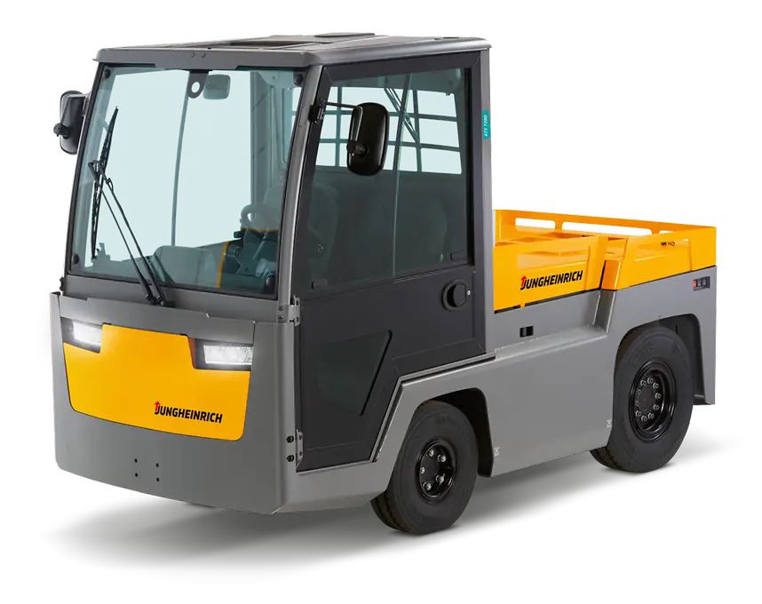 Ob glatte Industrieböden oder unebene Außenbereiche – die Superelastikbereifung sorgt stets für optimale Traktion. Der vielseitige Schlepper glänzt auch beim Arbeiten mit Sonderanhängern oder beim Ziehen von Routenzügen mit speziellen Taxi-Anhängern. Die gut einsehbare und leicht zugängliche Kupplung ermöglicht effizientes und schonendes Arbeiten. Geballte Power liefert ein sparsamer 24-V-Drehstrommotor mit hoher Leistung, kräftiger Beschleunigung und hohen Endgeschwindigkeiten. Für Flexibilität sorgt der universelle Kupplungsbau für unterschiedliche Anhänger. Leichtes Auf- und Absteigen dank niedriger Standplattform entlastet den Fahrer bei häufigen Stopps. Für Komfort und Sicherheit sorgen der geringe Abstand vom Fahrerstand zur Last, die stützende Rückenlehne, das Multifunktionslenkrad jetPILOT sowie diverse Fahrsicherheitssysteme.